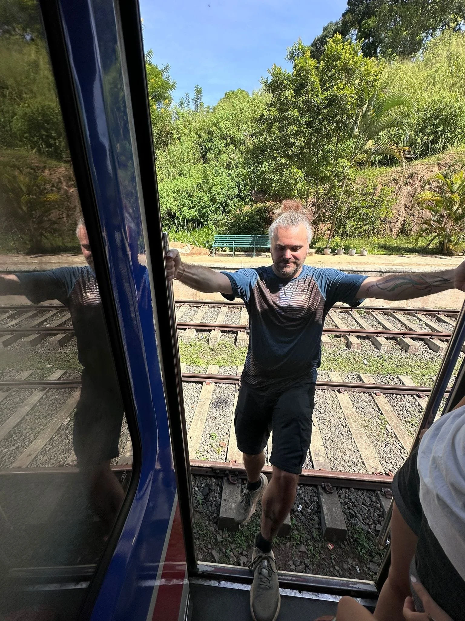 It seems the main reason people visit Kandy is not for the city itself, but instead of the famously scenic train ride between here and Ella, my previous destination. I was no different, and Maike and I (having now bumped in to each other in several hostels), on the advice of our hostel owner, headed to the stop before Ella in order to ensure we got a seat for the long train ride. Unfortunately it was the day before the final parade of Perahera festival in Kandy, and as such the train was so busy that even a stop early a seat wasn’t close to possible! The train was packed, but we were lucky in that we ended up next to the door, and so could take turns sitting with our legs dangling out of the open door - and occasionally whipping them back inside when passing narrow spaces. It really felt like we had the best seat on the train, and the best view. As the wind rushed past my face and cooled me, I sat and took in the landscape unobstructed.